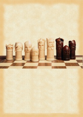 A most elegant set, remarkably plain but very beautiful in its simplistic styling. A combination of mediaeval masked figures on modern bases.