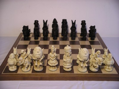 Large Alice chess set shown here on W45 Board (not included in price)