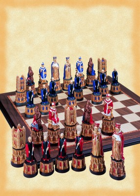 > CANTERBURY CATHEDRAL CHESS SET - HAND DECORATED