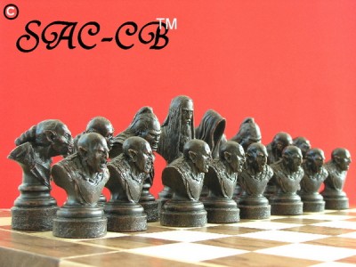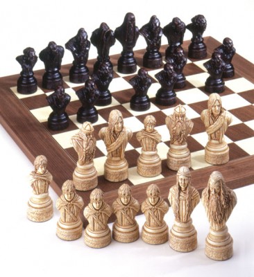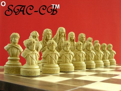 See the characters come to life in this outstanding Lord of the Rings work of art. The LOTR chess set from SAC is the definitive version of the renowned Tolkien tale. The sculpture has made the characters breathe and our photographer has shed light upon it. This magnificent chess set has been created by the skilful sculptors at SAC who have faithfully reproduced the characters from New Line Cinema''s motion picture trilogy, The Lord of the Rings. The first part of the trilogy, The Fellowship of the Ring, has inspired this set, the pieces are based upon the principal characters who are played by a cast of internationally renowned actors.