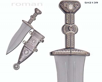 Early spathae are depicted on tombstoneswith hilts and scabbards very close to legionary types. It is likely that the auxiliary cavalry units copied legionary fashions making these swords essentially a hybrid between Celtic and Roman weapon design.