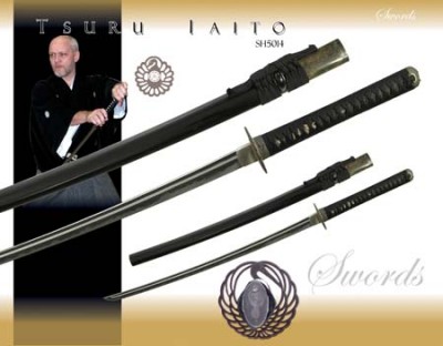 Note: As of April 6th 2008 import and sales of this item are now strictly controlled within the UK. Call or e-mail for information,but we still can supply it to any one with ''''Permitted activity'''' it is simple and straight forward.Iaito have long been the preferred training tools for the safe practice of the many Japanese sword-drawing arts known as Iaido. While not designed for sword on sword contact or test cutting, the un-edged Iaito is perfectly weighed and balanced for its designed task of safe repetitive drawing practice. The Tsuru Iaito are a breakthrough in design and functionality. Made of a special stainless steel, the blades are much more durable than Iaito blades made from aluminium alloy, with a “live” feel and much superior rigidity. Through a special tempering process, these Iaito blades eliminate the brittle behaviour sometimes associated with stainless steel, while retaining its low maintenance and rust-resistant qualities. These very affordable Iaito are the ideal training tools for safely practicing this ancient art. The Tsuru Iaito is available with a 26 inch Blade (SH5014), 27 inch Blade (SH5015), 28 inch Blade (SH5016) and 29 inch Blade (SH5017) all with a THICKNESS of .25 inch. FEATURES: Crane Tsuba, Fuchi & Kashira. Black Ray Skin (Same) Handle Wrap